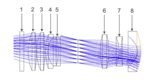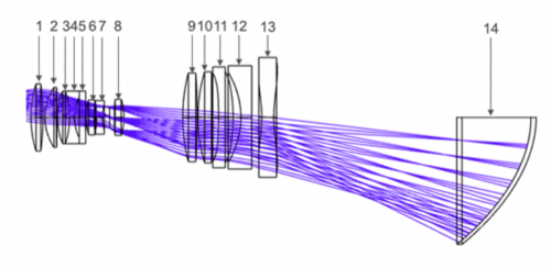 实现超小的投射比,超短焦投影镜头的复杂程度是难以想象的。首先,镜头镜片的数量上,一个典型的普通投影镜头是由8片左右的镜片组合而成,而一个典型的超短焦投影镜头是由 14 片以上的镜片组合而成,其中还包括更多难度更大的非球面镜片和自由曲面反射镜。