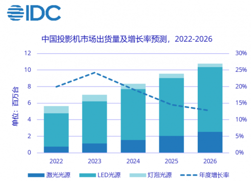 今年 IDC 预计,2022 年中国投影机市场总销量有望超过 560 万台,至 2026 年将会突破千万级。这样的飞速发展,离不开这些年国内投影厂商所进行的技术创新。