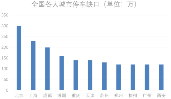 据公安部统计,截至2021年9月,全国机动车保有量达3.9亿辆,而停车位只有3.1亿个,全国停车缺口约8000万。目前大城市停车位缺口最大,深圳、东莞、广州、佛山等都超过100万,大城市里小汽车与停车位的配比为1:0.8,而在一些一线城市的主要区域,配比更加夸张,如在广州市越秀区为1:0.39。1比0.39是什么概念?就是每100个打算在这个区域停车的,只有39个幸运儿能顺利泊车,另外61个孤勇者要花额外的时间,精力,以及油费和电费去找到自己的归宿。而看到这一切的旁观者,即使本来有买车的冲动,也会被劝退。