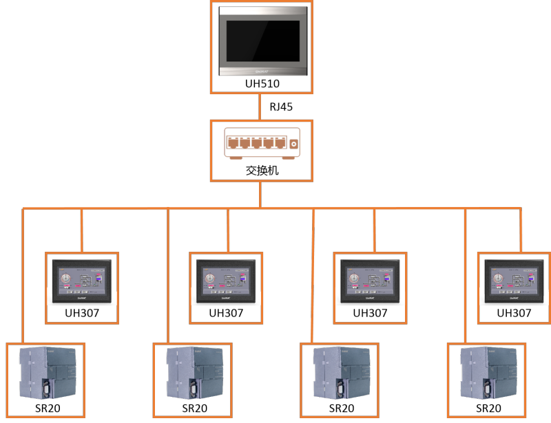 2. 一屏多机,中控10寸屏控制4台PlC的运行,并记录4台PlC运行数据。