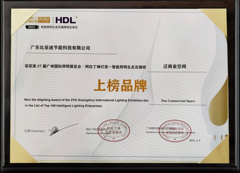 4月29日下午,2022年阿拉丁神灯奖智能照明生态百强榜公布,比亚迪半导体全资子公司——广东比亚迪节能科技有限公司获得2022第十届阿拉丁神灯奖智能照明生态百强榜。