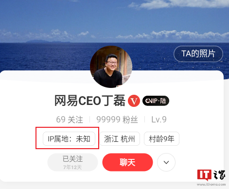 ▼ 网易 CEO 丁磊的 IP 属地为“未知”