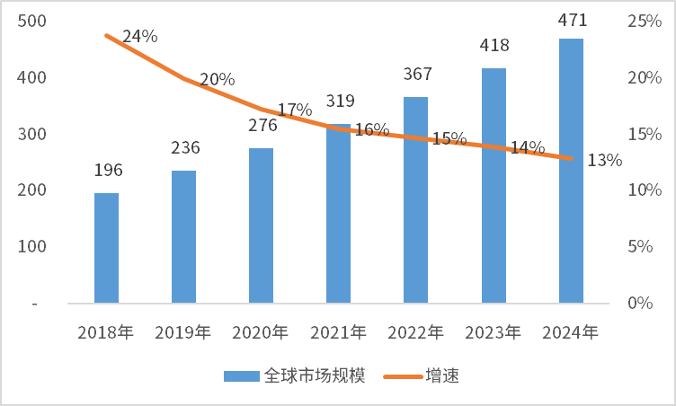 2018-2024全球智能家居市场规模 单位:亿美元