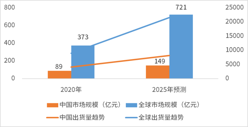 2020-2025家用摄像头产品出货量及市场规模 金额单位:亿元