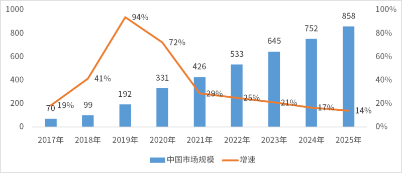 2017-2025 年中国家用智能视觉产品市场规模 金额单位:亿元