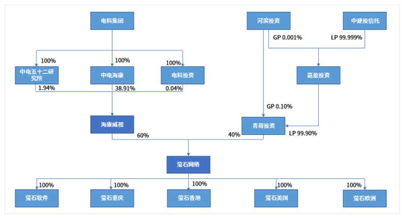 萤石网络为智能家居服务商及物联网云平台提供商,在智能家居摄像机、智能猫眼、智能门锁等智能家居产品的细分领域均处于市场领先地位。面向智能家场景下的消费者用户,提供以视觉交互为主的智能生活解决方案;面向行业客户,提供用于管理物联网设备的开放式云平台服务。公司前身为海康威视 2013 年成立的互联网业务中心,2015 年,海康威视出资设立萤石有限公司,2021 年,由海康威视和青荷投资发起设立为股份有限公司。目前萤石网络实际控制人为电科集团,海康威视为直接控股股东,持股 60%,萤石网络拥有 5 家控股子公司、6 家分公司。