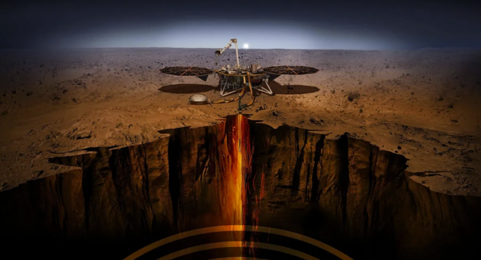 许多行星科学家长期以来一直怀疑火星地表下会充满冰。尽管如此,在火星两极仍有大冰层和冰冻的地面冰。模型预测,在那个纬度应该仍然有冰冻的地面,下面有含水层。 2018年,InSight航天器在Elysium Planitia着陆,这是一个平坦、光滑、靠近火星赤道的平原。它的仪器包括一个地震仪,测量由火星地震和陨石撞击引起的振动数据。