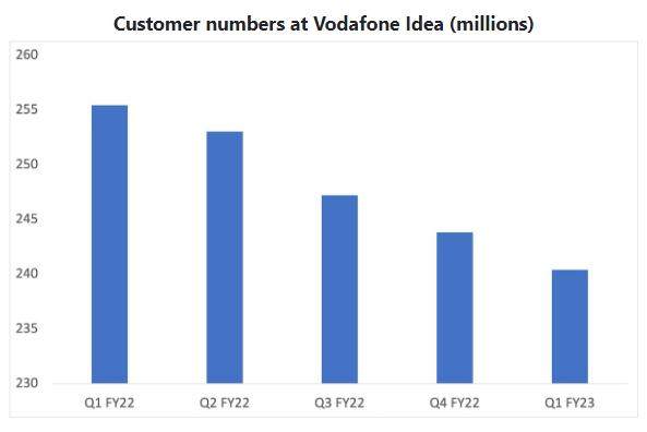 图:Vodafone Idea用户数量。资料来源:Vodafone Idea。