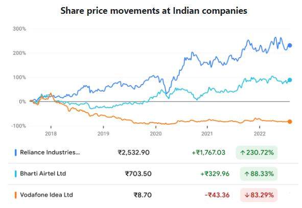 图:印度电信公司股价变化。资料来源:Google Finance。