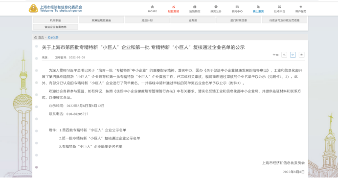 上海市经济和信息化委员会官网:http://sheitc.sh.gov.cn/gg/20220808/bb37dba3b038439d89d1f67e775752ce.html