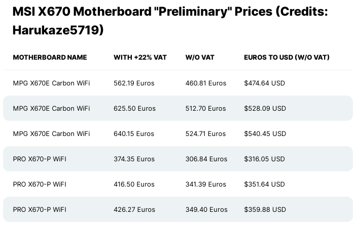 其次 Pro X670-P WiFi 主板的标价在 374.35 ~ 416.50 欧元(合 2590 ~ 2882 RMB)。