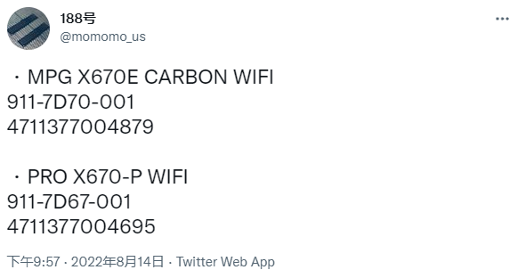 与基于 X570 芯片组的 AM4 旗舰主板产品线相比,微星 X670 / X670E 的首发阵容显然高出了不少(甚至比英特尔 Z690 平台更贵)。