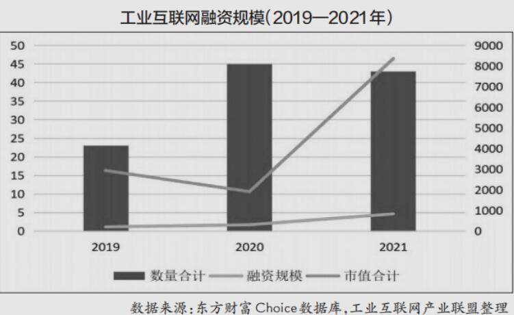 中国信息通信研究院发布的《中国工业互联网投融资报告(2021年)》(以下简称“报告”)显示,2021年我国工业互联网上市企业数量继续保持稳定增长,融资规模不断扩大。2021年,新增上市企业43家,累计融资金额833.63亿元。