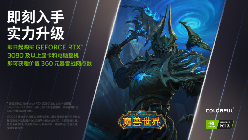 高效散热带来极致游戏体验,即日起购买七彩虹 RTX 3080 及以上显卡、整机就送价值 360 元的暴雪战网点,数量有限先到先得,兑完即止,抓紧时间来参与吧!