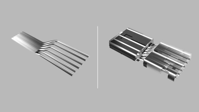 首先我们需要了解显卡散热器的构成,目前市场面大部分的显卡采用的为风冷散热方案,最明显的标志就是显卡本体的风扇,这就是风冷式显卡的特征。然而风扇只是风冷式散热器组成部分之一,热管与鳍片主要负责导热工作,对散热同样起到了至关重要的作用。