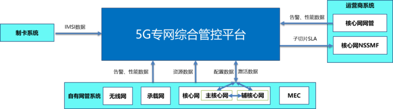 某石油公司 5G 专网分为自建专网和运营商公网租用两部分,需要构建一套综合管控平台实现对建专网及租用5G网络的统一管控。