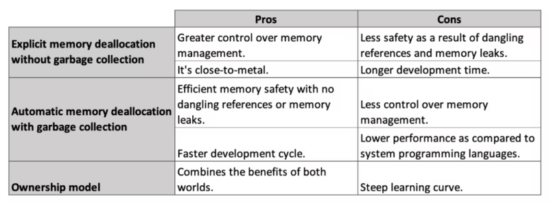 图2:Rust有优秀的内存管理机制,并提供很好的安全性
