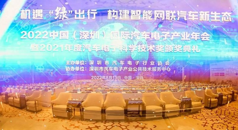 2022年8月13日,以“芯”机遇、“绿”出行,构建智能网联汽车新生态为主题的2022中国(深圳)国际汽车电子产业年会暨2021年度汽车电子科学技术奖颁奖盛典在深圳隆重举行。