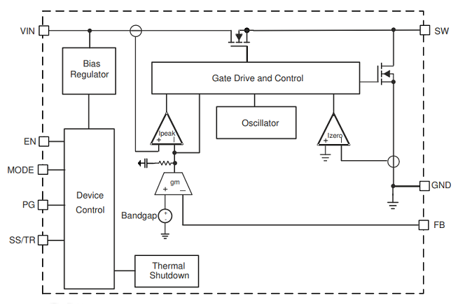 特征:使能、强制 PWM、频率同步、轻负载效率、输出放电、过流保护、电源良好、预偏置启动、软启动可调、同步整流、跟踪、UVLO 可调