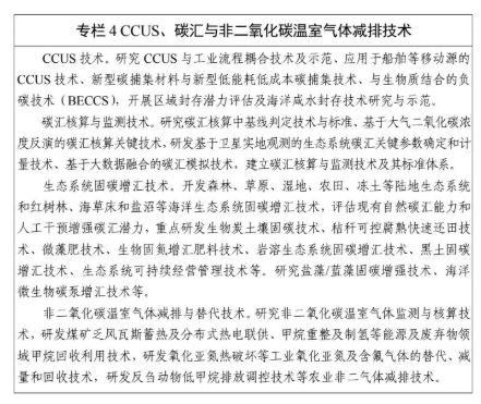 新能源载运装备。研发高性能电动、氢能等低碳能源驱动载运装备技术,突破重型陆路载运装备混合动力技术以及水运载运装备应用清洁能源动力技术、航空器非碳基能源动力技术、高效牵引变流及电控系统技术。04 负碳及非二氧化碳温室气体减排技术能力提升行动