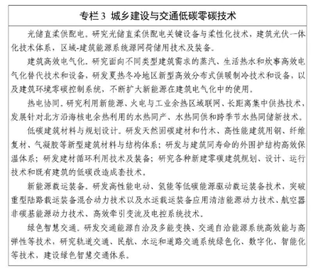 低碳零碳钢铁。研发全废钢电炉流程集成优化技术、富氢或纯氢气体冶炼技术、钢-化一体化联产技术、高品质生态钢铁材料制备技术。03 城乡建设与交通低碳零碳技术公关行动