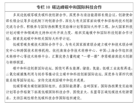10 碳达峰碳中和科技创新国际合作行动