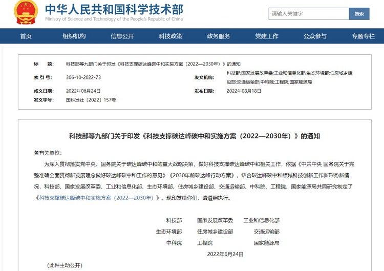 关注“双碳”目标!科技支撑碳达峰碳中和实施方案来了
