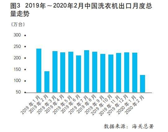 2019年,中国洗衣机出口量实现大幅增长。在这种向好的局面下,时间来到2020年,新型冠状病毒肺炎疫情在全球蔓延,导致洗衣机制造工厂复工推迟,物流运输滞缓,上门服务受阻,家电消费锐减。与此同时,中国洗衣机出口遭遇瓶颈,能否维持2019年的水平有待观察。