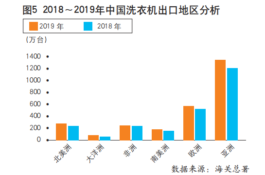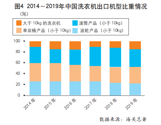 2019年,在中国洗衣机出口规模增长的同时,大家电内销市场呈现“慢节奏”的稳健态势。其中,洗衣机内销市场增长乏力,只到2019年下半年才有所恢复。因此,2019年中国洗衣机出口规模的大幅增长,对于国内洗衣机不温不火的局面无疑是提振的。