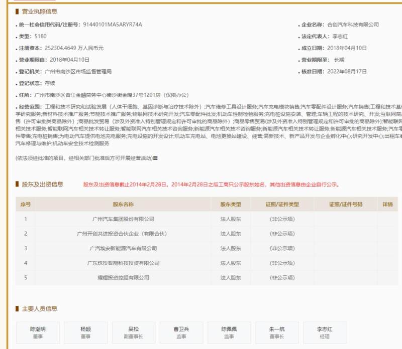据公开资料,合创汽车由珠江投管集团、广汽集团和蔚来汽车共同投资的一家新能源品牌,成立于 2018 年 4 月,于 2019 年推出首款智能电动全能 SUV—— 合创 007。