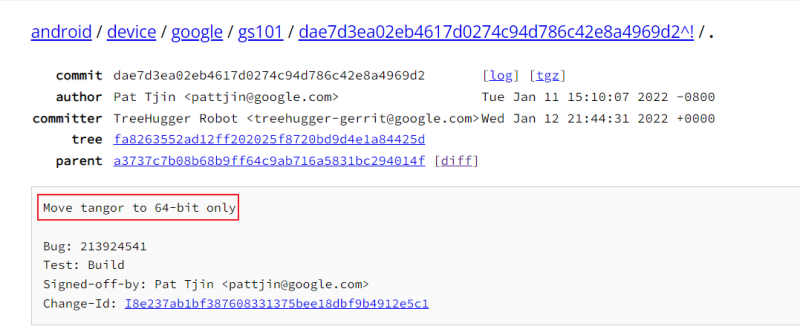 然而没过多久,就有爆料人士在Android 13的代码仓库中发现,Google提交了“Move tangor to 64-bit only”(翻译为“仅将tangor移动到64位”)。其中“tangor”为Pixel平板的代号,根据这个信息,似乎意味着Pixel平板或将仅支持64位的Android应用。