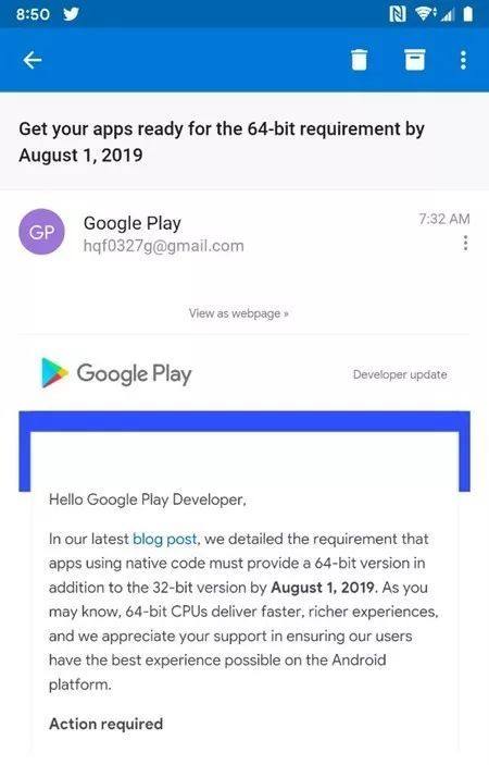 也就是说,从明年开始,Android将放弃支持32位应用,支持64位可能会成为一个常规功能。