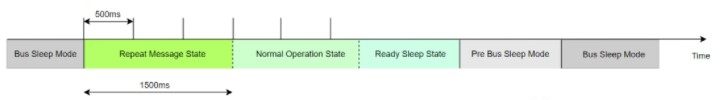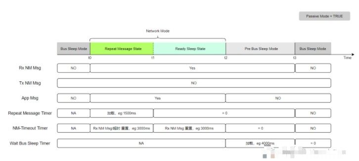 Wait Bus Sleep Timer:在PBM状态,收不到网络管理报文,该时间超时后进入BSM,比如:4000ms。PBM状态下,如果收到网络管理报文或者网络请求,则重新进入RMS。
