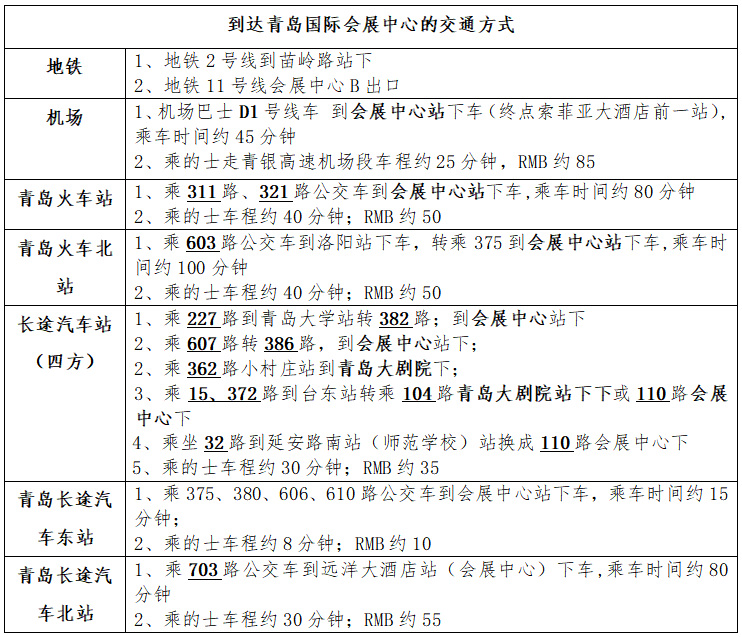 地点:青岛国际会展中心7号馆(青岛崂山区苗岭路9号)