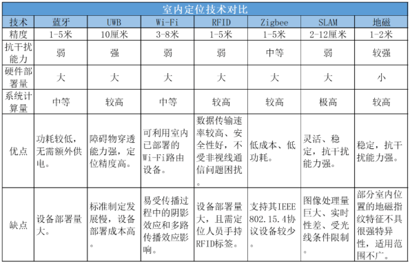 作为手机标配,相比其他需要重新部署的硬件,蓝牙可以说赢在了起跑线。但在精度、抗干扰能力、部署量上,蓝牙的优势并不够大。目前主流的室内定位技术还有UWB、Wi-Fi、SLAM、地磁等等,并且已有不少相关专利和解决方案出现。