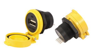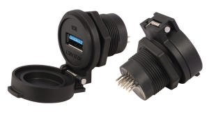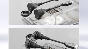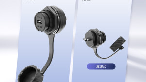 龙仕航空插头 USB防水连接器 自动翻盖后螺母安装