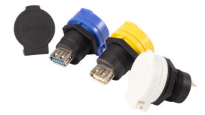 龙仕航空插头 工业USB防水母座 后螺母安装自动翻盖