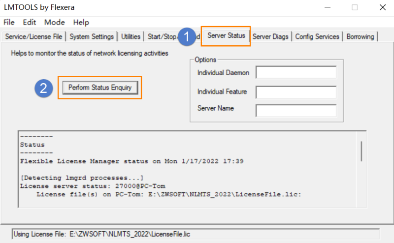 2.进入配置程序"Server Status”界面,点击【Perfom Status Enquiry】进行实时状态查询;