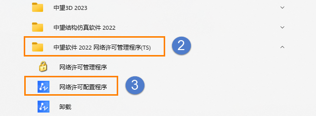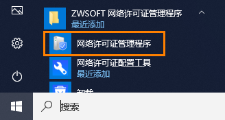 1.在开始菜单中点击【所有应用】找到“中望软件网络许可管理程序(TS)”,选择后点击【网络许可配置程序】,或者直接在搜索栏搜索”网络许可配置程序“;