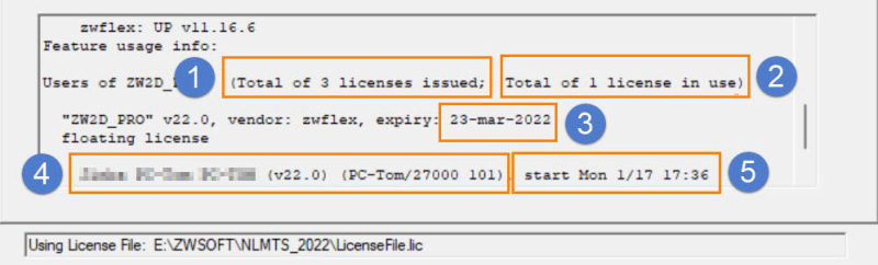 5.序号①中数字为节点总数,序号②中数字为当前正在使用的节点总数,序号③为网络授权到期时间;