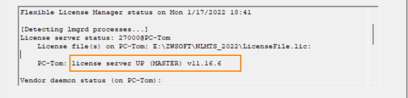 3.向下拖动右侧下拉条,显示“license server UP”说明许可证服务器处于启动状态;